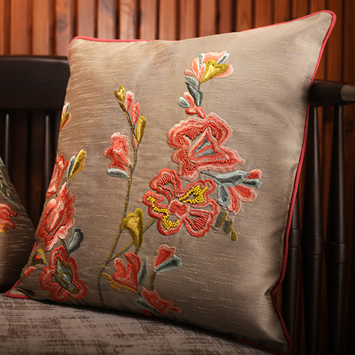 Subtle beige cushions adorning motifs of Mediterranean Tulips in full bloom. Crafted in rich hues of beige, orange and hints green, the cushions are easy to blend across different interiors. This cushion comes with a polyfill cushion filler (18″x18″)
